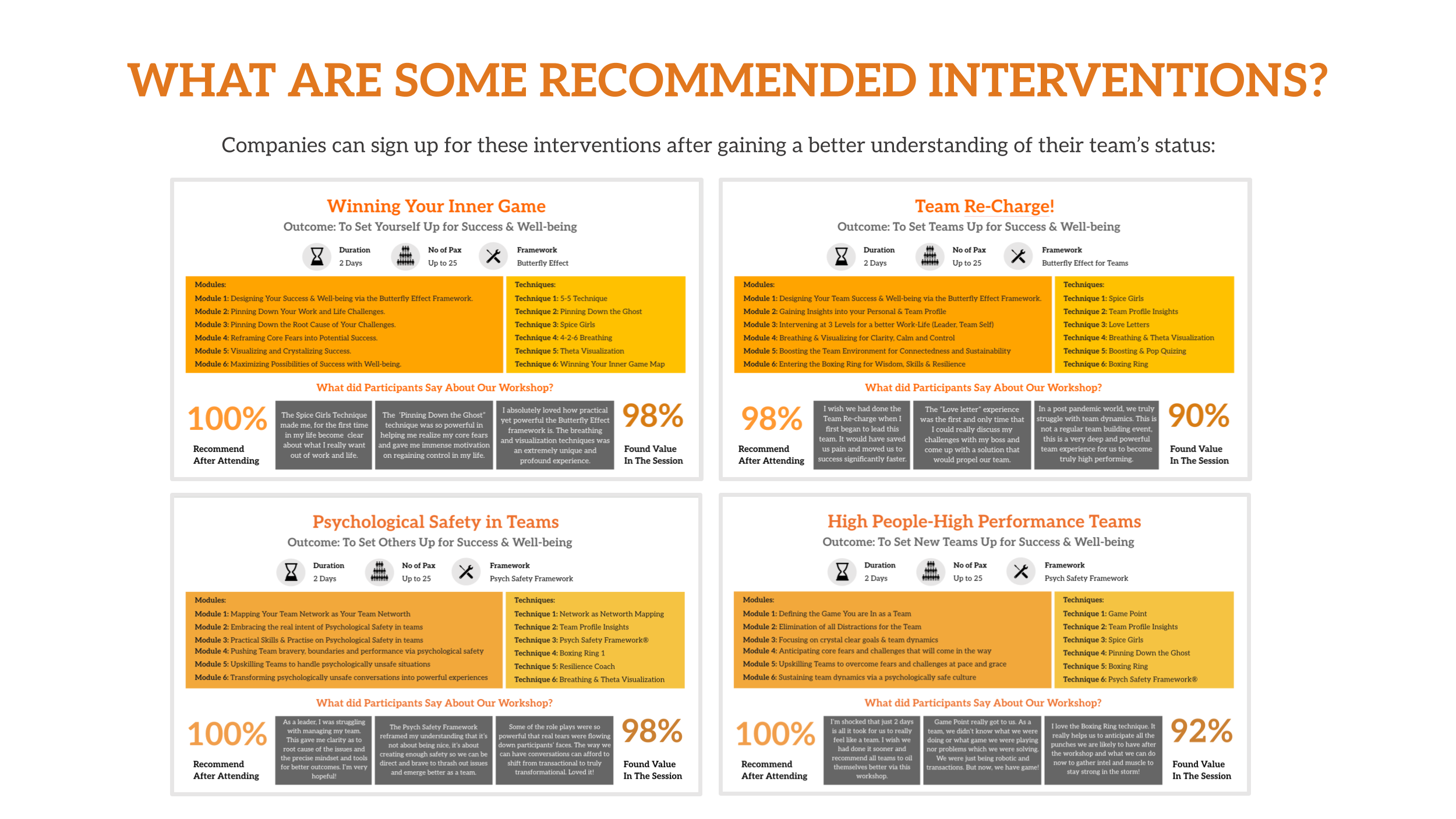 Discover your employees’ well-being experiences, and then take action! Sign up for our specialized well-being workshops designed to enhance workplace wellness.